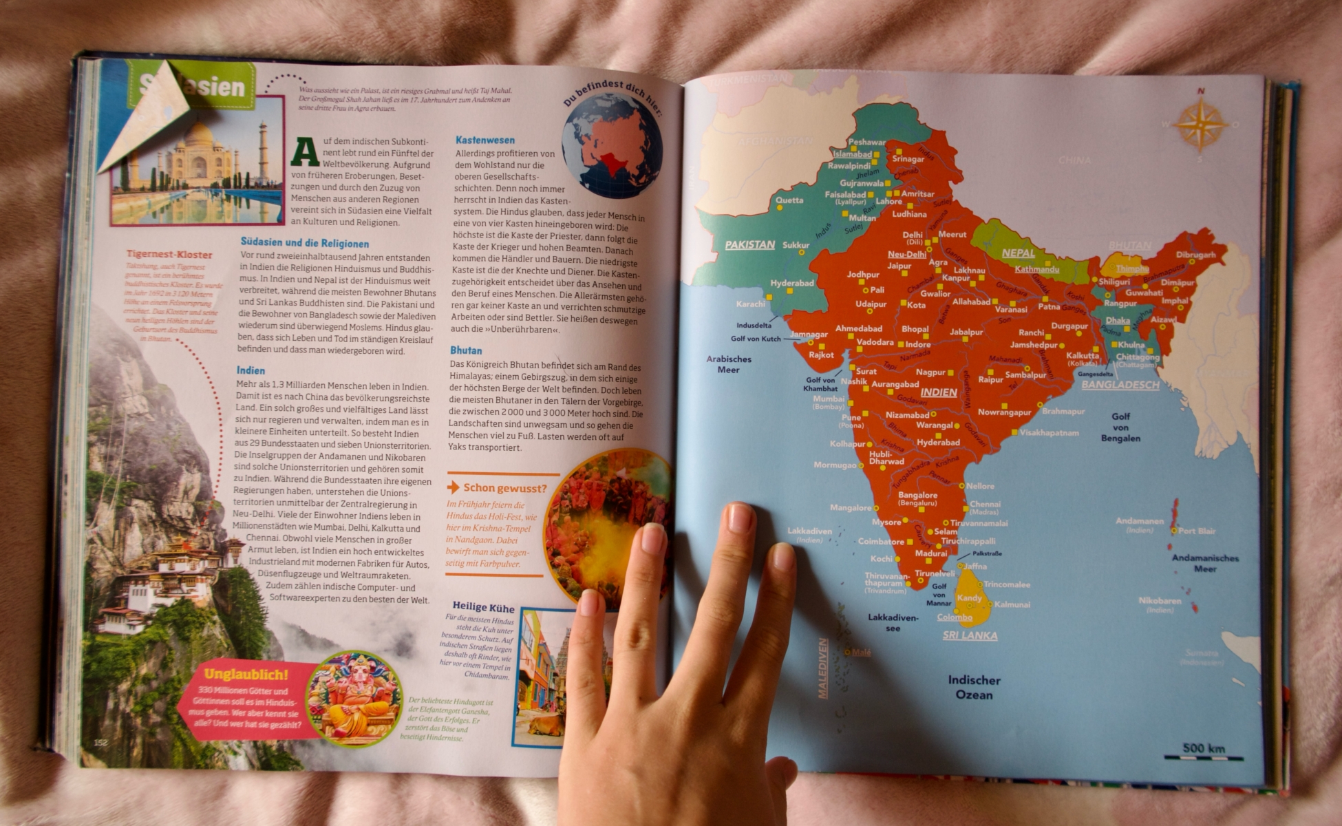 Ich habe viel über verschiedene Länder und Kulturen lernen können, dadurch dass ich unglaublich viele Orte der Welt mit eigenen Augen erleben durfte und der Weltatlas von: „Was Ist Was“ ist unglaublich hilfreich beim lernen von Geografie gewesen!